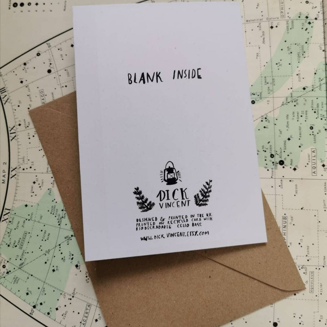 Meet me under the stars greetings cards, perfect for the camper in your life. Cards are 148mm x 110mm 300gsm recycled stock, inside is blank so you can write a personal message